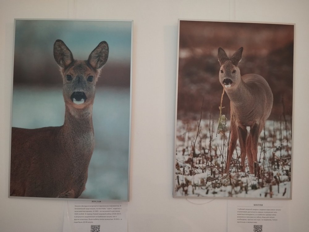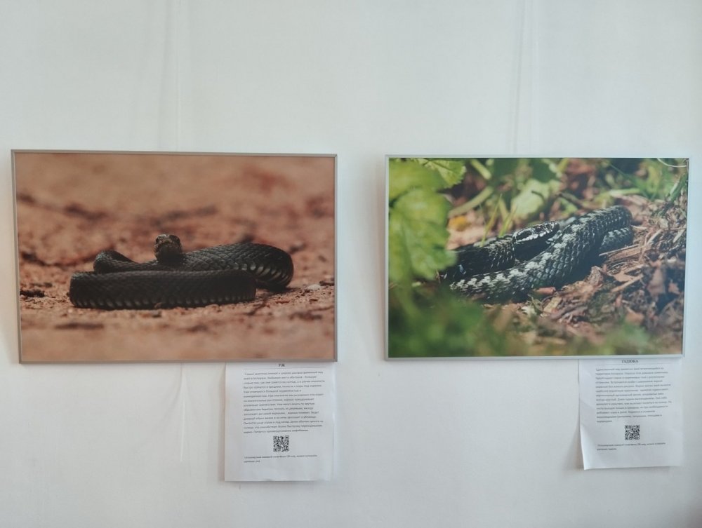 Фотографии сопровождаются справочной информацией и специальным QR-кодом, при наведении на который можно услышать голос того или иного животного.